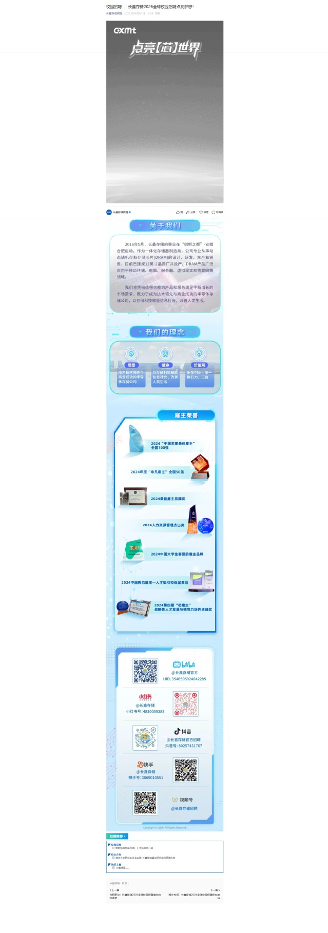 校園招聘 | 長鑫存儲2026全球校園招聘點(diǎn)亮夢想!
