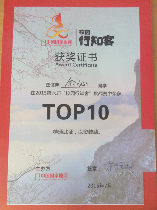 “校園行知客”挑戰(zhàn)賽是《中國國家地理》雜志社從2010年開始舉辦的面向全國高校學生的大型公益活動,鼓勵大學生“讀萬卷書、行萬里路”,將“知”與“行”融為一體,鼓勵夢想、行動和堅持,讓學生們在行走中認識中國、記錄中國!