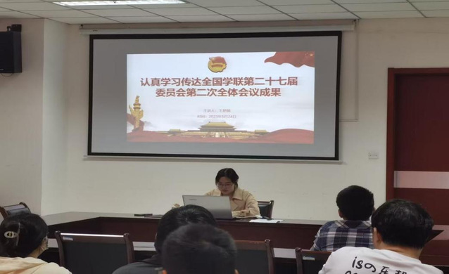 會上,王夢圓首先介紹了全國學(xué)聯(lián)的基本概念和發(fā)展歷程。隨后她詳細介紹了全國學(xué)聯(lián)第二十七屆委員會第二次全體會議具體內(nèi)容,學(xué)習(xí)了全國學(xué)聯(lián)《關(guān)于認真學(xué)習(xí)宣傳貫徹黨的二十大精神團結(jié)帶領(lǐng)廣大同學(xué)堅定跟黨走、奮進新征程的決議》,她強調(diào)要把黨的領(lǐng)導(dǎo)貫穿在學(xué)聯(lián)學(xué)生會改革建設(shè)的各方面、全過程,要突出組織效能,規(guī)范制度建設(shè)和運行機制,創(chuàng)新運行模式,更好融入黨領(lǐng)導(dǎo)下共青團主導(dǎo)的青年組織體系,形成育人合力。最后王夢圓領(lǐng)學(xué)了《中華全國學(xué)生聯(lián)合會委員會、主席團工作規(guī)則(試行)》,并希望大家能夠反復(fù)閱讀,全面領(lǐng)會文件精神,并認真貫徹履行。