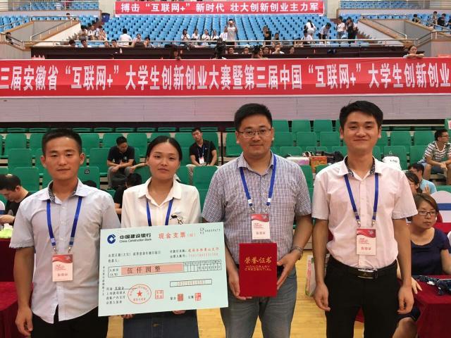 2017年暑假,在顧涓涓和胡國華兩位老師的指導下,我校2016級3名碩士研究生(吳亞、張紅夢、李思聰)組成團隊參加了第三屆中國“互聯網+”創新創業大賽。8月4日,該團隊奔赴安徽財經大學參加安徽省總決賽,經過激烈的角逐以優異的成績獲得安徽省金獎,隨后該團隊斗志昂揚、積極進取,經過堅持不懈的努力最終取得了國家銅獎的好成績。