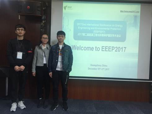 2017年12月15日至17日,我校2016級研究生潘暢、周仲愷在趙歡老師的帶領下參加了在廣州舉辦的2017第二屆能源工程與環境保護國際學術會議(EEEP2017),會議期間與來自各國的專家學者和其他參會人員圍繞環境保護和能源節約等主題進行了匯報和討論。參會人員分別介紹了各自領域的研究方向和成果,并展開了積極的交流。會議期間潘暢做了題為《Heavy Metal Contaminated Soil imitation biological treatment Overview》的匯報,介紹了我國目前重金屬污染的概況、應對措施以及治理方法的新方向,重點介紹了生物修復技術。