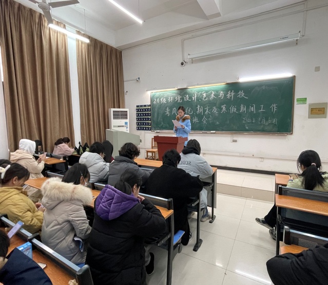 2022年1月6日上午10點(diǎn)20分,設(shè)計(jì)學(xué)院輔導(dǎo)員吳嫻老師在37棟108教室主持召開了“2021級環(huán)境設(shè)計(jì)、藝術(shù)與科技專業(yè)考風(fēng)考紀(jì)和期末及寒假期間工作”主題班會。21級環(huán)境設(shè)計(jì)1班、2班,藝術(shù)與科技三個班全體同學(xué)參與此次班會。