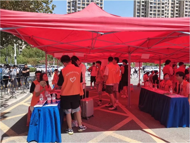 9月7日早上7點15分,設計學院新生報到志愿者們在老師們的組織指導下,有條不紊的展開了迎新工作。同學們身著統一的志愿者服裝,佩戴迎新志愿工作證,為來自全國各地的設計學院2022級新生提供報名服務。