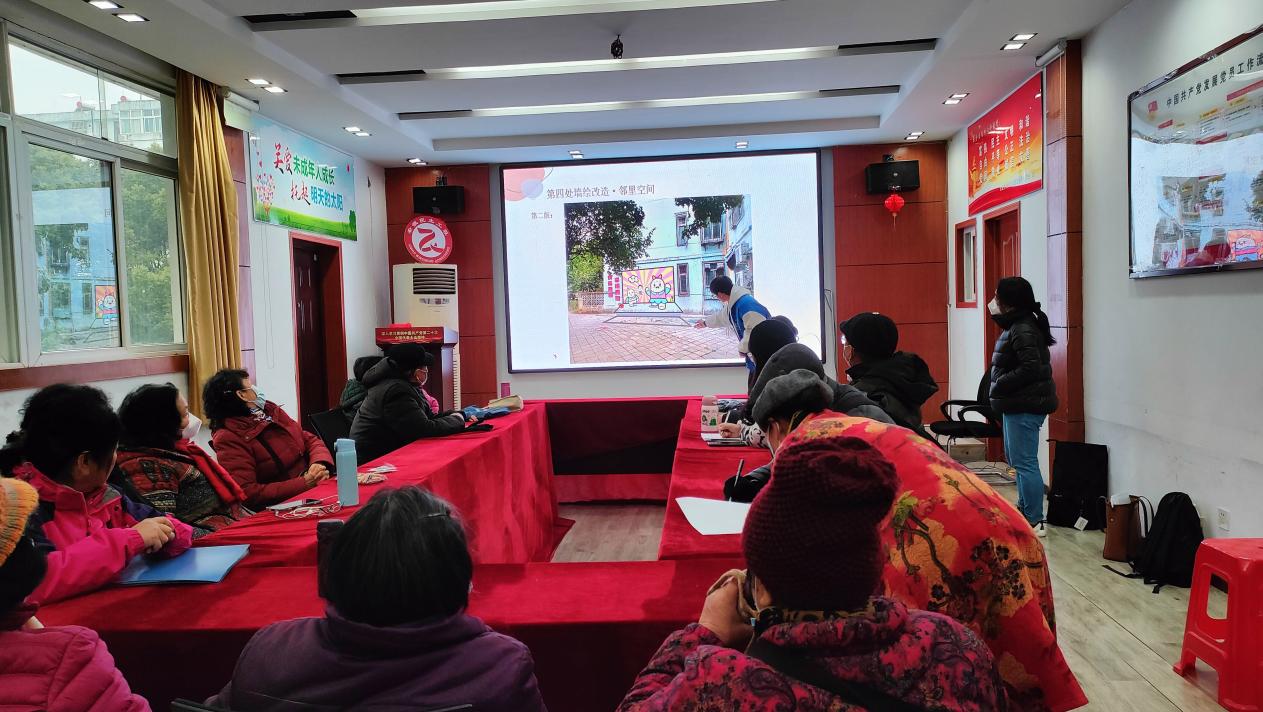 會上教工第二黨支部田文老師介紹了項目選址、項目實施方案以及項目設計理念等,轄區居民骨干、黨員代表共同參與項目討論,就方案的細節提出了有價值的意見和建議,竹蔭里社區黨委書記孟書記對方案的設計內容和創新做法表示充分肯定,此次項目見面會為后期項目實施開展打下了良好基礎。