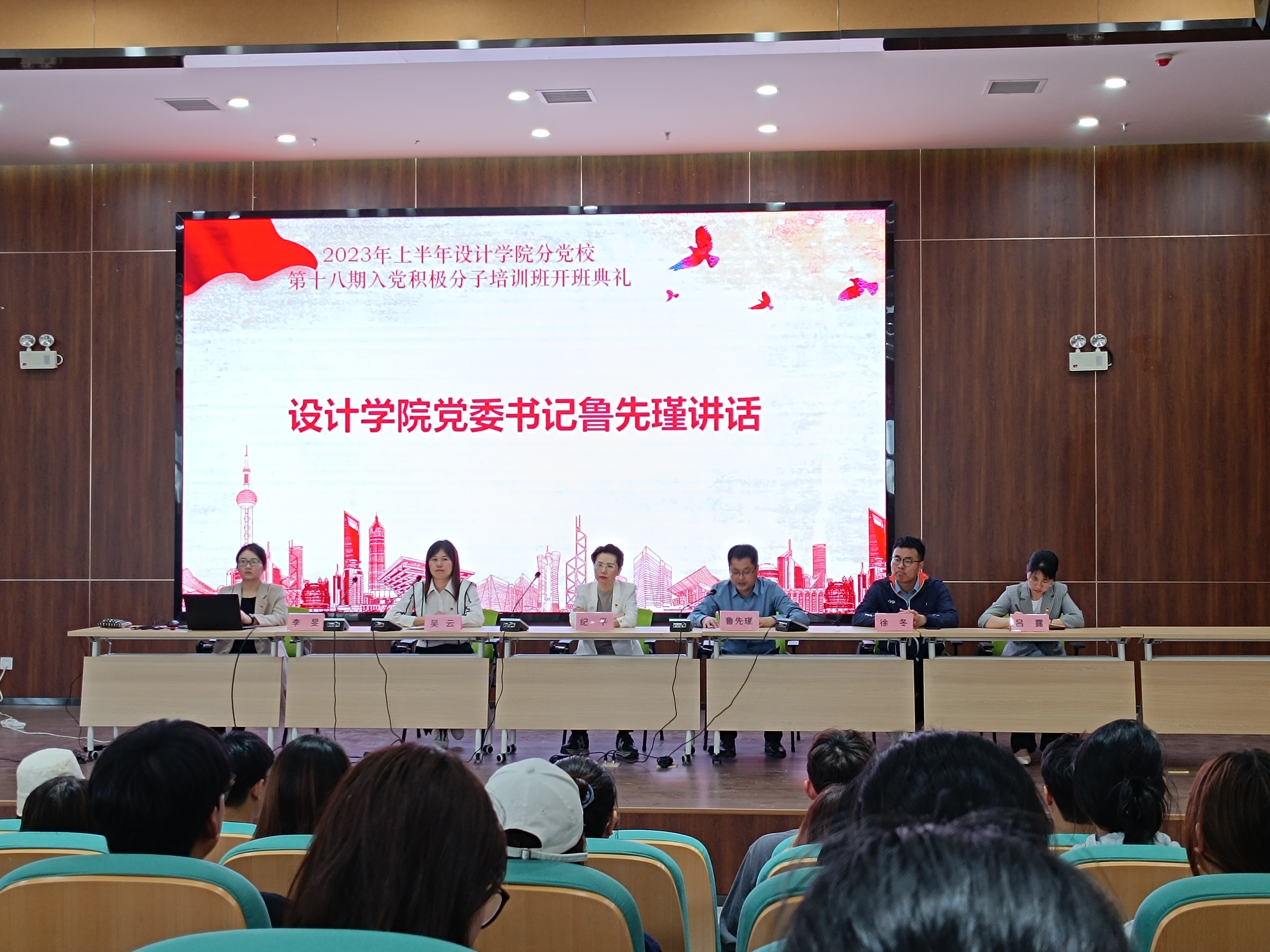 4月17日,設計學院分黨校第十八期入黨積極分子培訓班舉行開班典禮,開展入黨積極分子培訓工作。人事處處長紀平、設計學院黨委書記魯先瑾、黨委副書記吳云、各學生黨支部書記出席開班典禮。