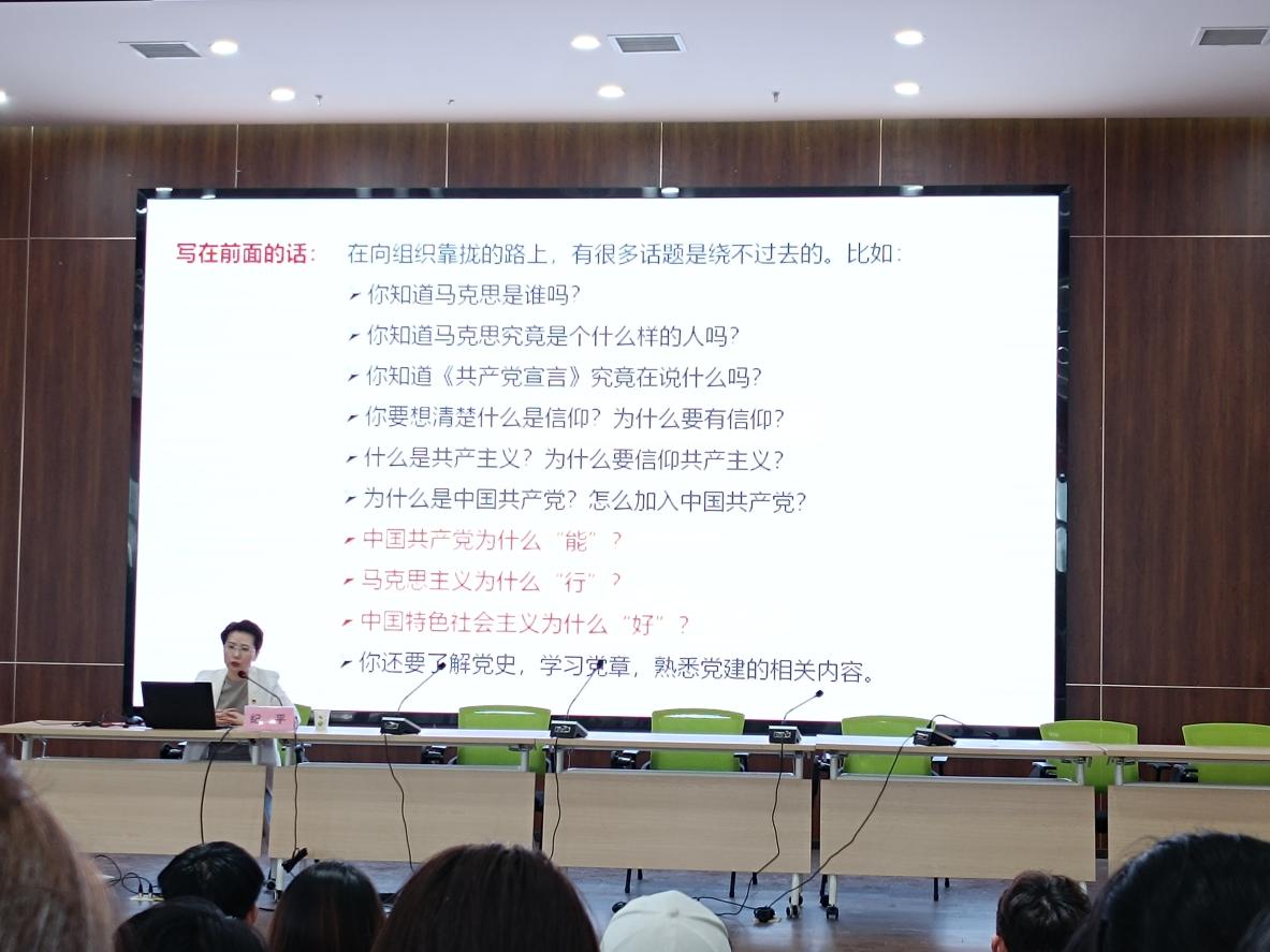 開班典禮后,人事處處長紀平為設計學院的入黨積極分子進行了以“端正入黨動機,爭做時代新人”為主題的第一次培訓。培訓課程中解釋了中國共產黨為什么“能”、馬克思主義為什么“行”和中國特色社會主義為什么“好”三大問題。培訓中紀平老師詢問了幾位同學的入黨動機,并提出獨立思考需要國際視野、獨立思考需要讀書行路的觀點。