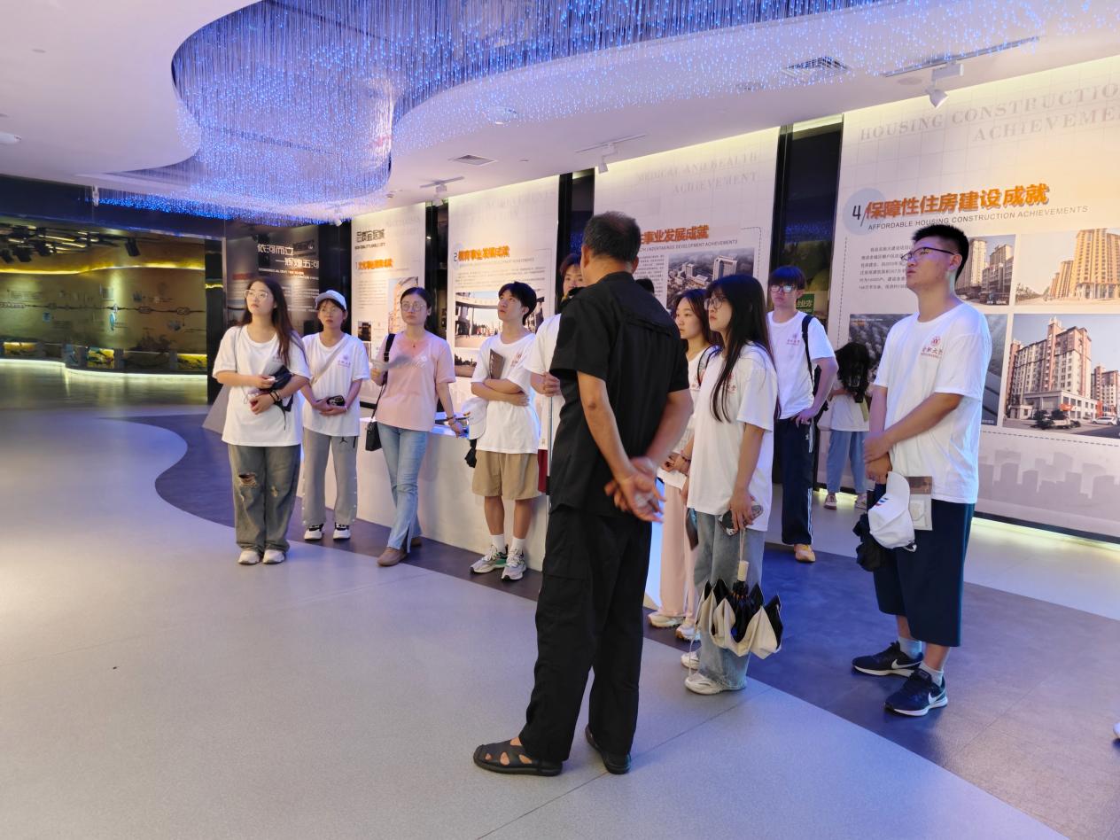 隨后,團隊一行來到了五河縣城市規(guī)劃館。同學們在城市規(guī)劃館內(nèi),通過沙盤模型、詳實的規(guī)劃圖等豐富的資料,對五河縣的歷史起源、發(fā)展歷程、規(guī)劃理念以及未來發(fā)展方向有了更為直觀和全面的了解。城市規(guī)劃館的工作人員還給同學們介紹了五河縣在城鄉(xiāng)建設、工業(yè)農(nóng)業(yè)發(fā)展、文旅產(chǎn)業(yè)和經(jīng)濟社會發(fā)展方面所取得的成就,以及面臨的挑戰(zhàn)和機遇。同學們紛紛表示,將把此行的所見所感、所學所思,轉(zhuǎn)化為今后學習和實踐中的動力和靈感。