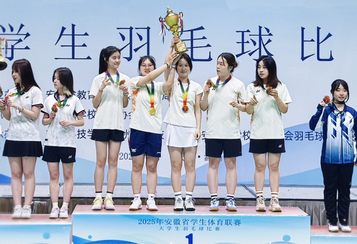 4月28日,2025年安徽省學生體育聯賽大學生羽毛球比賽在安徽科技學院滁州校區體育館落幕,我校羽毛球隊充分發揚團結協作、勇于拼搏的精神,榮獲女子團體金牌、混合雙打銀牌、男子團體銅牌的“一金一銀一銅”優異成績,其中女子團體取得參賽以來最佳成績。