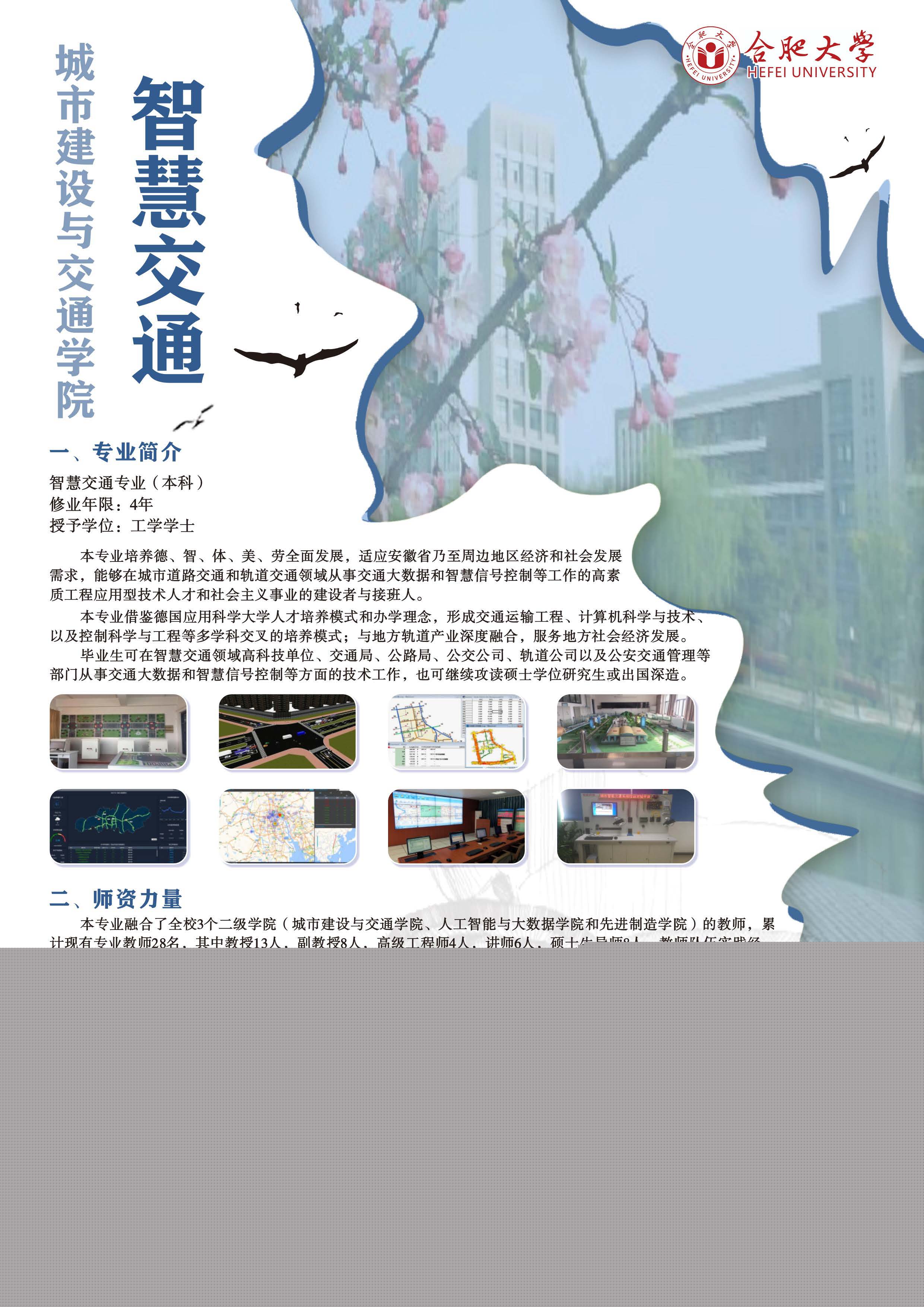 畢業生發展方向:畢業生可在智慧交通領域高科技單位、交通局、公路局、公交公司、軌道公司以及公安交通管理等部門從事交通大數據和智慧信號控制等方面的技術工作;也可繼續攻讀碩士學位研究生或出國深造。