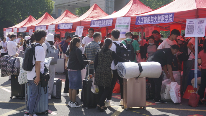 2022級新生在工作人員和志愿者的引導下,在各學院報到點依次排隊,有序進行錄取通知書核查、“兩碼”查驗、48小時內(nèi)核酸檢測陰性報告檢查、行李消毒、體溫檢測,隨后辦理相關入學手續(xù),由志愿者帶領前往學生社區(qū)。2022級人工智能與大數(shù)據(jù)學院數(shù)學與應用專業(yè)的本科生顏詩婷說:“報到的過程十分順利,遇到很多幫忙拿行李的學長學姐,大家都非常熱情!”2022級經(jīng)濟與管理學院工商管理專業(yè)的本科生劉安琦說道:“很開心能夠進入大學校園,我對未來的大學生活充滿了期待,希望能在合院交到志同道合的好朋友。”2022級先進制造工程學院電子信息專業(yè)的研究生趙森林說道:“我的本科四年就是在合院度過的,再次回到母校我的心情十分激動,接下來的讀研時間里,我將會以更加優(yōu)秀的姿態(tài)迎接美好未來!”