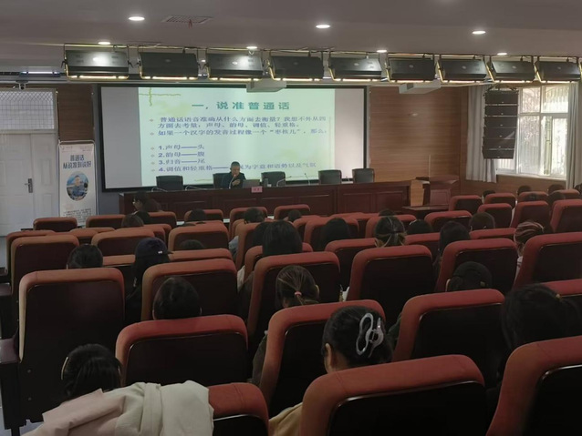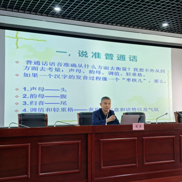 為響應國家推廣普通話的號召,提升大學生普通話水平,助力文化傳承,合肥大學語言文化與傳媒學院于2024年10月23日下午兩點在一區博學樓C座學術報告廳舉辦主題為“普通話,從說準到說好”的講座,中國語言文學系主任洪婧、2023級漢語言文學專業全體同學參加。