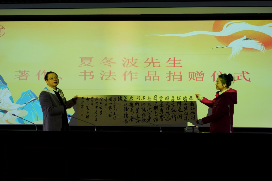 講座開始前,語言文化與傳媒學院副院長查金萍介紹了夏冬波處長在文旅領域的豐富經驗和在包公文化挖掘上的貢獻。之后,夏處長向學院贈書并贈予墨寶,現場氣氛熱烈。