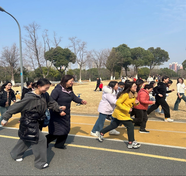 活動伊始,學院領導發表了熱情洋溢的致辭,向全體女教職工致以節日的問候和美好的祝福,肯定了她們在教學、科研、管理等各項工作中的辛勤付出與卓越貢獻。隨后,趣味健身活動正式拉開帷幕。此次活動設有多個充滿趣味性與挑戰性的項目,如限時競走、三人四足,團體接力等,集娛樂性、協作性和競技性于一體,充分考驗了參與者的團隊協作能力與運動技巧。