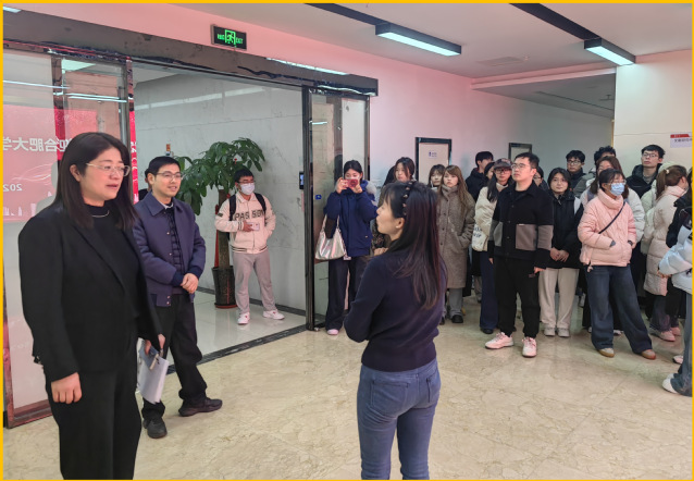 在安策智庫行政主管王俊霞引導下,師生先后參觀了公司開放式辦公區(qū)、社科研究中心、檔案管理室和黨建文化廳,了解數(shù)據(jù)監(jiān)測、政策分析等實務場景,現(xiàn)場觀摩智庫分析系統(tǒng)與數(shù)字化檔案管理技術的運行模式。