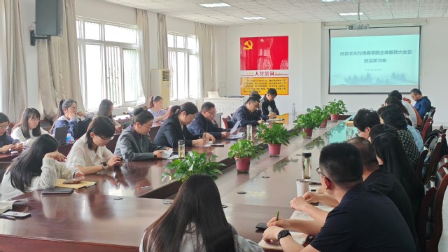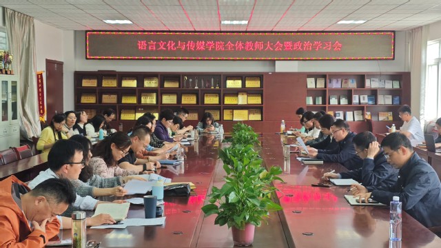4月8日下午,語言文化與傳媒學院在5棟大會議室召開全體教師大會暨政治理論學習會,會議由院黨委書記儲昭輝主持。