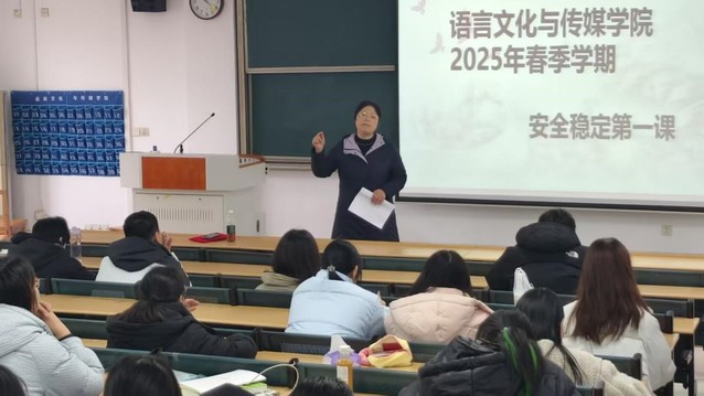 3月4日中午12:10,語言文化與傳媒學院安全教育第一課在一區善思樓C座101教室順利舉行。本次活動由語言文化與傳媒學院黨委副書記張愛萍主持,語言文化與傳媒學院團委負責老師竇思佳出席。