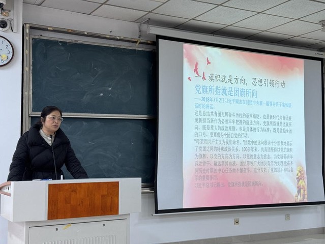 首先,張愛萍老師圍繞“黨旗所指就是團(tuán)旗所向”,提出“旗幟就是方向,思想引領(lǐng)進(jìn)步”的觀點(diǎn),向同學(xué)們闡明了黨團(tuán)之間的特殊政治關(guān)系,明確了廣大團(tuán)員青年應(yīng)為實(shí)現(xiàn)黨在不同歷史時期的中心任務(wù)而不懈奮斗。