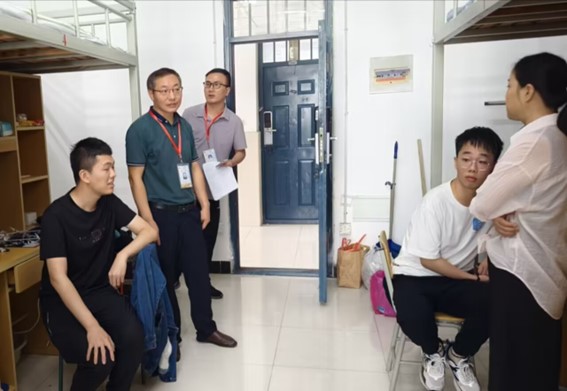 在三期蘭苑宿舍里,儲昭輝書記慰問了24級的男生們,與同學們和家長朋友們進行了親切的交談。圍繞學習生活的方方面面,送上來自學院的關心與溫暖,叮囑同學們遇到困難或困惑時,要及時向輔導員反應,學院一定切實為同學們解決問題。同時,書記和院長提醒同學們要規劃好大學生活,提高安全意識,謹防電信詐騙,時刻注意寢室安全和用電安全,注意個人衛生和宿舍衛生,注意個人財產安全,外出關好門窗,共同維護一個安全、健康、和諧的住宿環境。