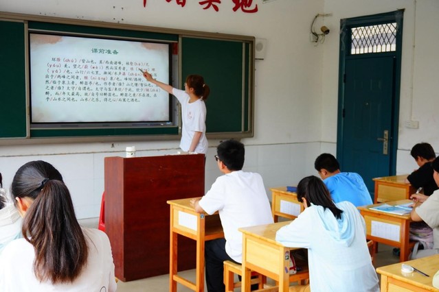 教育是社會進步的基石,是國家和民族繁榮昌盛的源泉。2024年7月6日,語言文化與傳媒學院“文脈傳承,助農興村”暑期“三下鄉”社會實踐團隊中的教學組細分了國學組、英語組和書法組,旨在激發孩子們對傳統文化的的興趣。雖然室外烈日炎炎,但教室內充滿了歡聲笑語,一場場生動有趣的教學課堂在石板沖鄉初級中學的教室里如火如荼地進行著。
