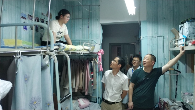 在結束了繁忙的返校流程后,文傳學院的同學們紛紛進入宿舍進行整理,為晚上的住宿和日后的宿舍生活做好準備。董書記一行到達學生宿舍后,查看了宿舍的有關情況,確認宿舍在八個月沒有同學居住的情況下是否有嚴重的霉變情況產生。同時對同學們長途跋涉的辛苦進行了慰問,也對同學們身體健康狀況進行了詢問,表達了對同學們的關心。隨后,領導們對學生在學校期間的疫情防控事項進行了說明和講解,希望同學們在學校期間也不要放松對病毒的防護。最后,董書記提出可以加強身體素質的鍛煉,提高自身的免疫力;同時指出同學們要加強對宿舍衛生的重視,營造良好的住宿環境,也降低細菌滋生的條件。