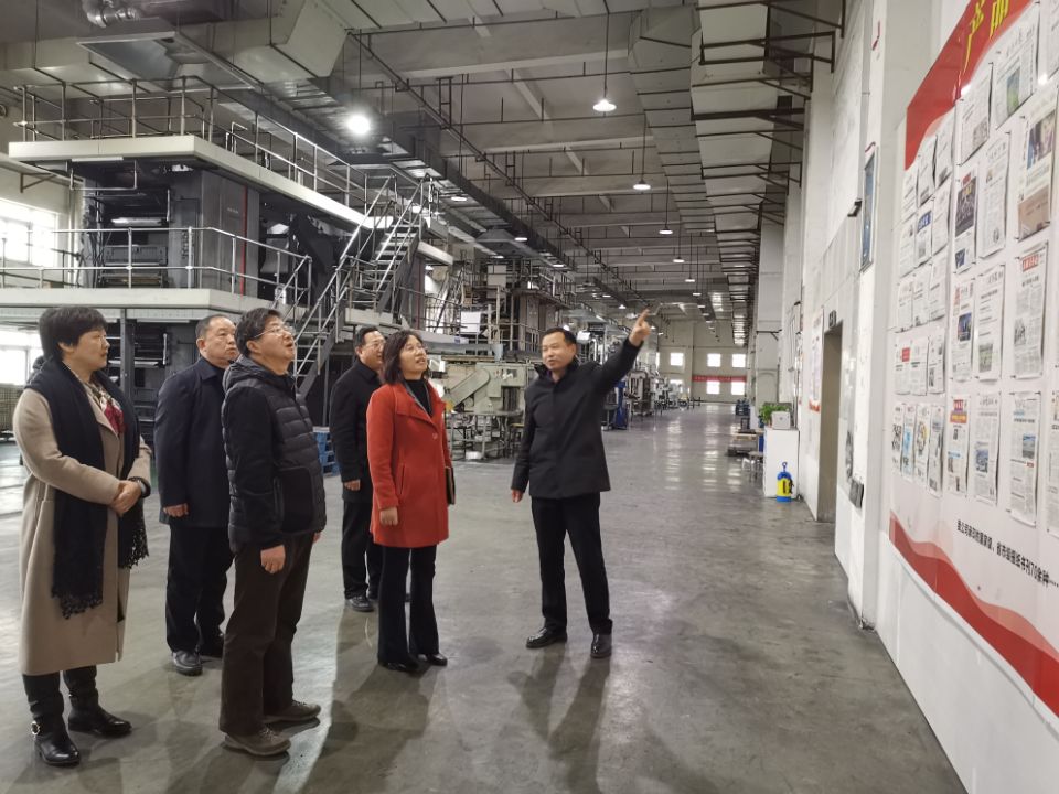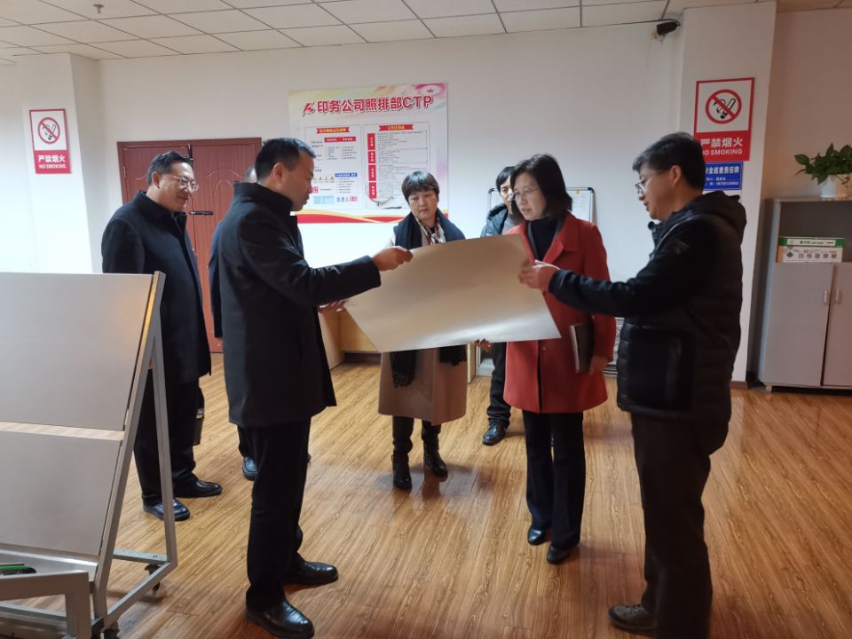 甄奎首先帶領調研組參觀了合肥報業數字出版發行中心。崔智勇現場介紹了中心目前主要承接的刊印業務,數字化印刷生產線、照拍工藝等。