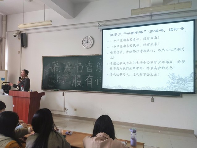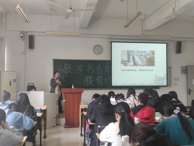 講座一開始,查金萍老師通過課件的方式向我們展示了講座的主題“最是書香能致遠,腹有詩書氣自華”,用幽默生動的語言和詳細的數據向大家道出了讀書的重要性,強調書籍和閱讀帶給我們的不僅是對心中理想世界的支持,更是對我們思想和心靈的升華和凈化。接下來查老師以古今中外的名人為例,闡述了讀書足以怡情,足以博彩,足以長才,使人變得充實、機智,讓內心充盈、強大。之后老師向同學們提出了一些讀書建議和考研書目,如重視經典閱讀、看專業暢銷書。