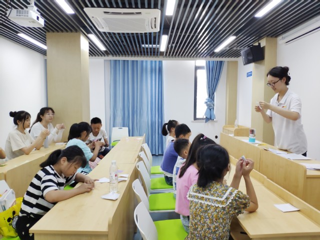 教學組歌唱小組的志愿者們通過發揮自己的特長,教同學們識譜、練聲,學習紅色山歌《映山紅》。窗外的蟬鳴,屋里歌聲陣陣,組合在一起,譜寫夏日的曲目。語文教學小組的志愿者們寓教于樂,開展了神話故事、歷史故事分享會、讀書交流會、猜燈謎等趣味活動。