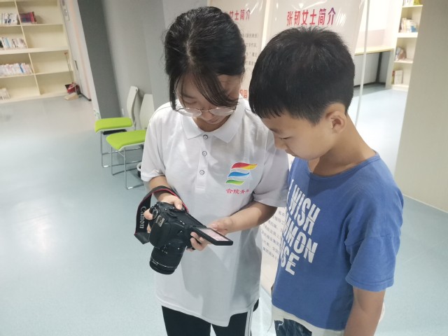 攝影技術課上,志愿者們向同學們展示了單反相機的構造,介紹了使用辦法和注意事項,并幫助同學們去學習使用單反相機。每一位同學都在志愿者的指導下使用相機拍攝身邊的事物,用自己在課堂上所習得的內容和自己的見解記錄生活中的美好。