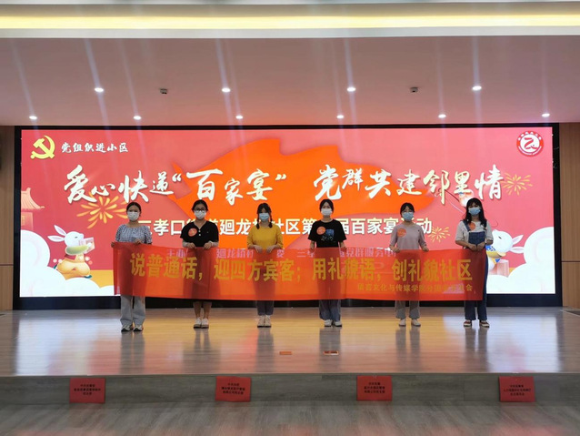 9月16日下午三點整,語言文化與傳媒學院七名志愿者于三孝口街道黨群服務中心三樓初心講堂參加了由廻龍橋社區黨委、三孝口街道黨群服務中心舉行的廻龍橋社區第九屆百家宴活動。