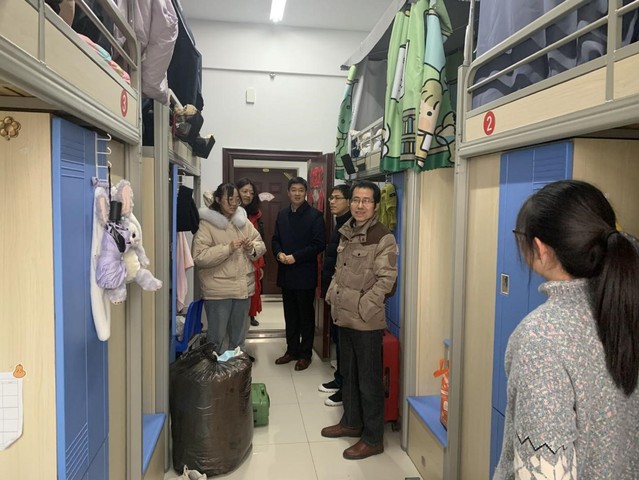 1月10日,語言文化與傳媒學院黨政主要領導帶領學工隊伍一行前往學生宿舍,走訪探望在校學生。