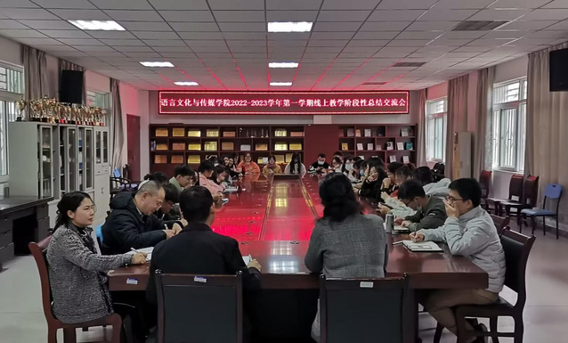 為進一步總結線上教學經驗,推進信息技術與教育教學深度融合,促進人才培養和教學質量的提升,語言文化與傳媒學院于2022年11月14日召開了2022-2023學年第一學期線上教學階段性總結交流會,學院黨委副書記張愛萍、學院教學院長殷明明、學工辦主任顧盼盼、教學辦副主任章衡、院分團委負責人劉政、輔導員柳守志與各班學生代表共同參會。