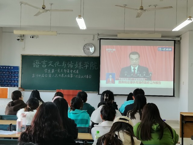2023年3月5日上午九點,第十四屆全國人民代表大會一次會議在人民大會堂開幕。語言文化與傳媒學院學生第一黨支部組織學生黨員以集中和分散學習的方式,觀看了大會開幕式直播。