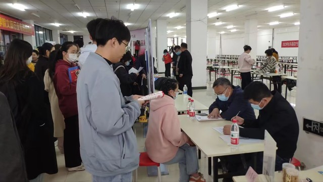 招聘會吸引了來自省內外35家用人單位到場,提供工作崗位240多個,涉及漢語言文學、新聞學、金融、旅游、教育等專業,招聘會現場人頭攢動,氣氛熱烈。各用人單位通過面對面交流等方式向同學們介紹公司的概況、職業發展方向、人員需求以及選擇該單位的理由等。通過與用人單位的交流、溝通,很多同學與用人單位初步達成了就業意向。部分畢業生表示,將會擺正就業心態,調整職業規劃,加強專業學習,接受社會的選擇。