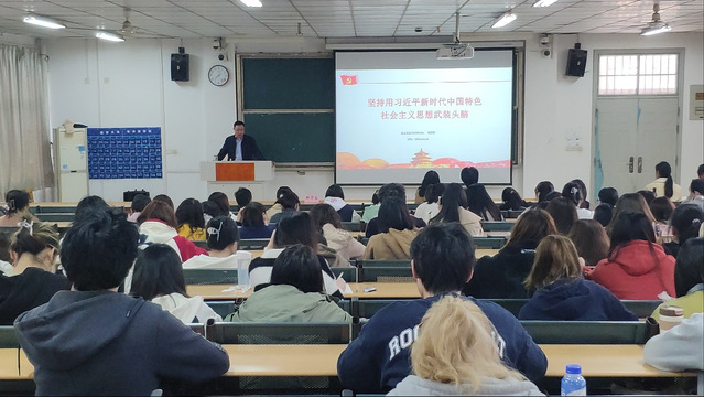 4月25日中午,語言文化與傳媒學院2023年入黨積極分子培訓班第一次理論授課在善思樓C座101教室舉行,本次黨課由學院黨委書記儲昭輝講授,題目為《堅持用習近平新時代中國特色社會主義思想武裝頭腦》,本期入黨積極分子培訓班全體學員參加。
