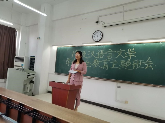 9月29日上午11時,在合肥學院35棟409教室,語言文化與傳媒學院黨委副書記、19級漢語言文學專業輔導員張愛萍老師主持召開了19級漢語言文學專業學生安全教育主題班會。