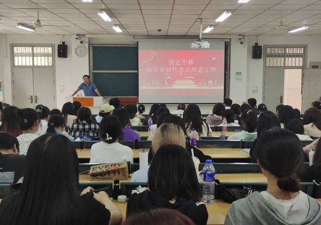 5月23日下午,語言文化與傳媒學(xué)院2023年入黨積極分子培訓(xùn)班第三次理論授課在一區(qū)善思樓A座101教室舉行。本次黨課由校黨委委員、宣傳(統(tǒng)戰(zhàn))部部長(zhǎng)賈峰主講,題目為“堅(jiān)定不移做好新時(shí)代意識(shí)形態(tài)工作”,我院及旅游與會(huì)展學(xué)院本期入黨積極分子培訓(xùn)班學(xué)員參加,黨課由語言文化與傳媒學(xué)院黨委書記儲(chǔ)昭輝主持。