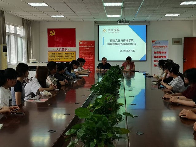 為進(jìn)一步增強(qiáng)學(xué)生防范網(wǎng)絡(luò)電信詐騙意識(shí),提升防范網(wǎng)絡(luò)電信詐騙能力,有效預(yù)防和減少網(wǎng)絡(luò)電信詐騙,共建和諧平安校園。5月30日,語(yǔ)言文化與傳媒學(xué)院在一期五號(hào)樓二樓會(huì)議室召開(kāi)了防網(wǎng)絡(luò)電信詐騙專題會(huì)議。院黨委書(shū)記儲(chǔ)昭輝、黨委副書(shū)記張愛(ài)萍、全體輔導(dǎo)員、各班級(jí)班長(zhǎng)、團(tuán)支書(shū)等學(xué)生代表參加了會(huì)議。