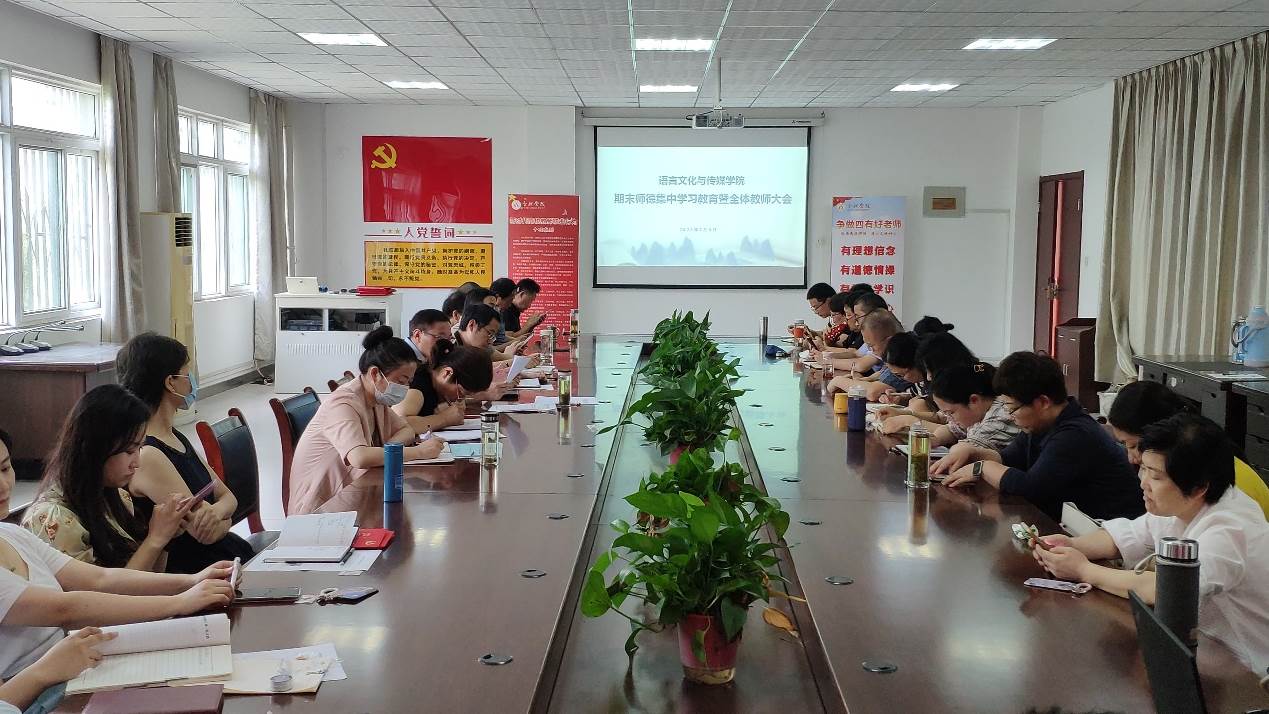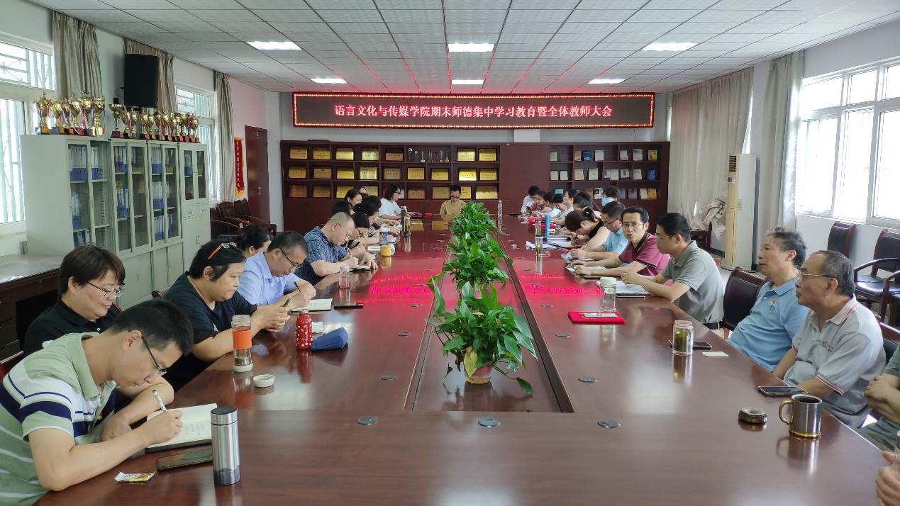 7月6日下午,語言文化與傳媒學院在五棟二樓會議室舉行了期末師德師風集中學習教育暨全體教師大會,學院領導班子成員及全體教職工參加會議,會議由學院黨委書記儲昭輝主持。