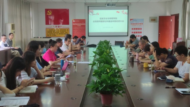 9月19日下午,語言文化與傳媒學院在5棟2樓會議室召開了2024年度國家社科基金申報工作動員大會。會議由副院長查金萍主持,學院黨委書記儲昭輝、院長丁增武、副院長殷明明,學院各系主任、專業負責人、骨干教師和新進博士等參會。