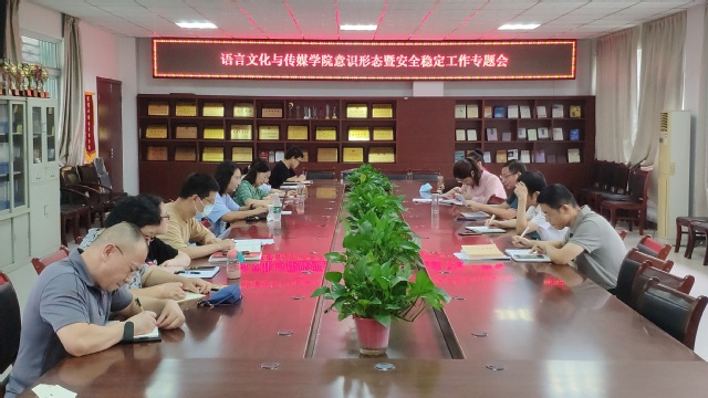 9月19日,語言文化與傳媒學院在二樓會議室召開了2023年下半年意識形態暨安全穩定工作專題會,分析研判部署我院今年秋季學期意識形態和安全穩定工作。學院黨政領導、科級干部以及各黨支部書記、各系(室)中心主任、輔導員參加會議,會議由院黨委書記儲昭輝主持。