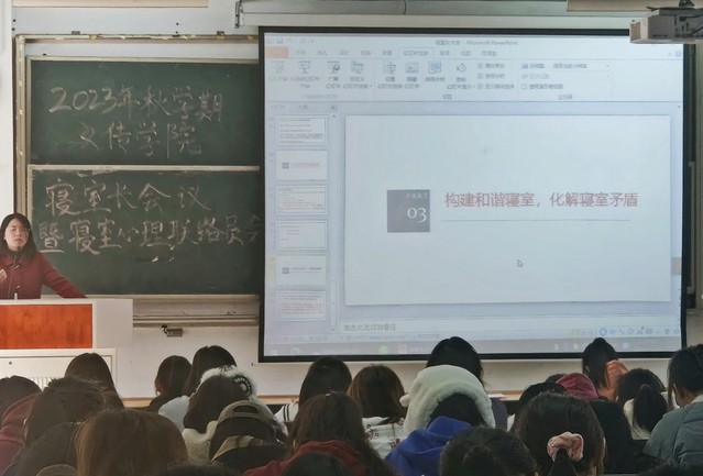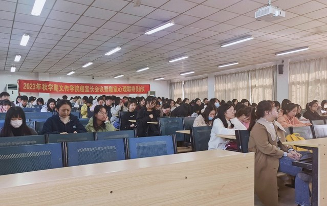 為充分發揮寢室長、心理聯絡員在學院心理健康教育中的重要作用,進一步加強學生安全管理,11月17日,語言文化與傳媒學院在5號樓101教室召開了2023年秋學期寢室長暨心理聯絡員會議,學工辦主任顧盼盼和各年級寢室長、心理聯絡員參加了本次會議。