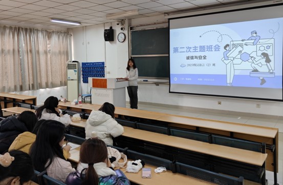 12月4日上午10:00,在語言文化與傳媒學(xué)院黨委副書記、23級漢語言文學(xué)專業(yè)輔導(dǎo)員張愛萍老師的指導(dǎo)下,語言文化與傳媒學(xué)院23級漢語言文學(xué)專業(yè)二班在善思樓C座101教室成功召開了以“誠信與安全”為主題的班會。本次班會由23級漢語言二班班委邢嘉怡主持,23級漢語言二班學(xué)生參加。