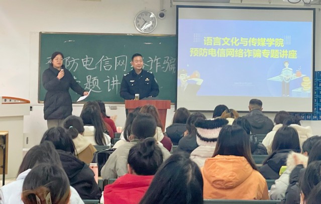 為深入踐行電信網絡安全觀,鞏固加強大學生識別電信詐騙、網絡詐騙的知識,進一步增強全體師生防詐騙安全意識,12月13日上午,語言文化與傳媒學院在5棟307召開預防電信網絡詐騙專題講座。此次講座邀請到蓮花派出所民警蔣勇前來主講,校保衛處治安科科長王良斌、院黨委副書記張愛萍、院學工辦主任顧盼盼、輔導員柳守志以及全體學生代表出席會議。