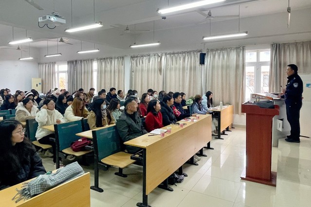 主講人蔣勇在講座上以網絡安全為切入點,詳細分析了近年來在大學生群體中高發的不同電信詐騙及網絡詐騙類型,認真講解和分析相關詐騙案件實例,他表示,防范電信詐騙要從自身做起,日常生活當中必須提高警惕,不要貪圖小利,遇到類似情況要與家人朋友多核實溝通,做到不貪心、不輕信、多防范,不給違法犯罪分子提供可趁之機。