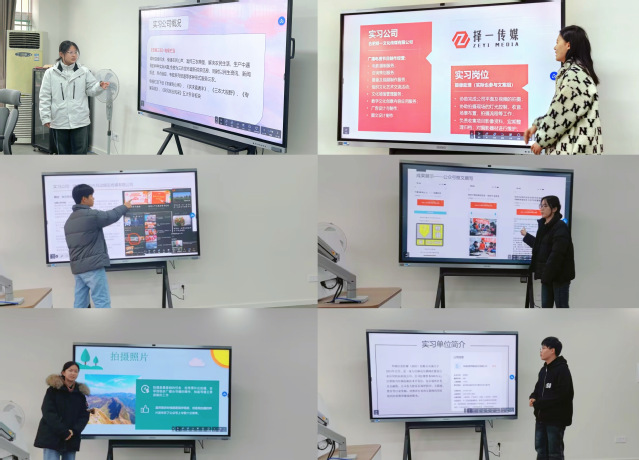 隨后,“3+1”媒企實訓答辯在三個會場同時進行,教師評委認真聽取學生匯報并提出問題,學生進行簡要回答,同時提出教學建議。