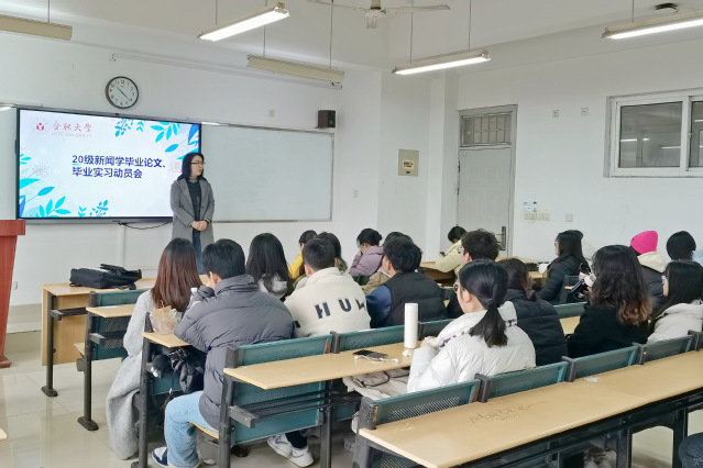 此次畢業論文、畢業實習動員大會由新聞與數字傳媒系主任張冰清主持,新聞學專業論文指導教師與同學共同與會。會上,張冰清老師說明了畢業論文的整體要求和重點注意事項,強調畢業論文是學生生涯的關鍵環節,要認真依照規范完成,注重選擇論文主題,結合實踐、真題真做,積極向指導老師請教。