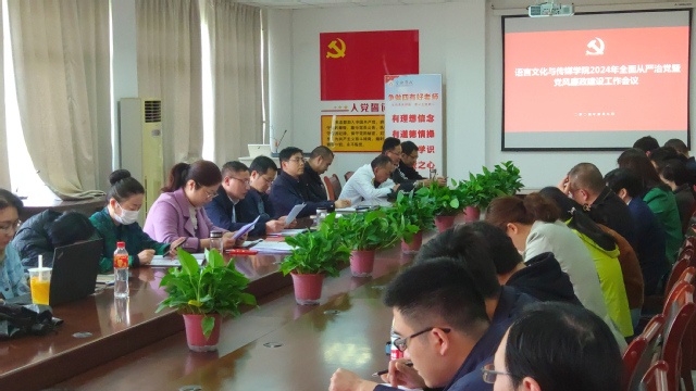 4月9日下午,語言文化與傳媒學院在學院大會議室召開2024年全面從嚴治黨暨黨風廉政建設工作會議,學院全體教師參加會議,會議由院黨委書記儲昭輝主持。