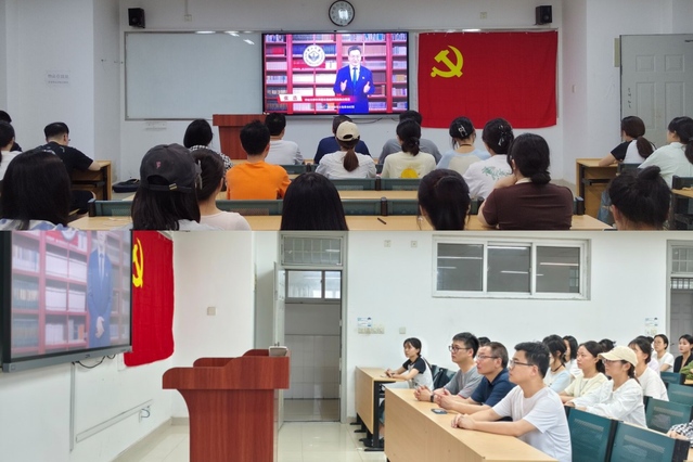 6月28日,語言文化與傳媒學院組織師生黨員觀看2024年高校黨組織示范微黨課展播第二講《黨史中的紀律建設》,其中全體學生黨員在5棟304教室集中觀看。