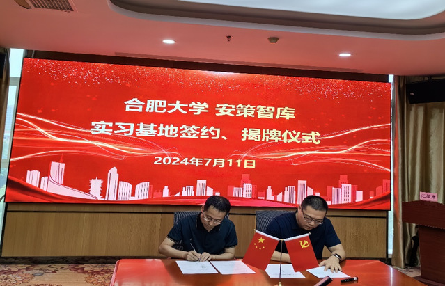 啟動儀式后,丁增武院長還與陳丹董事長簽署了校外實習基地協議,并共同為“合肥大學大學生校外實習基地”揭牌。